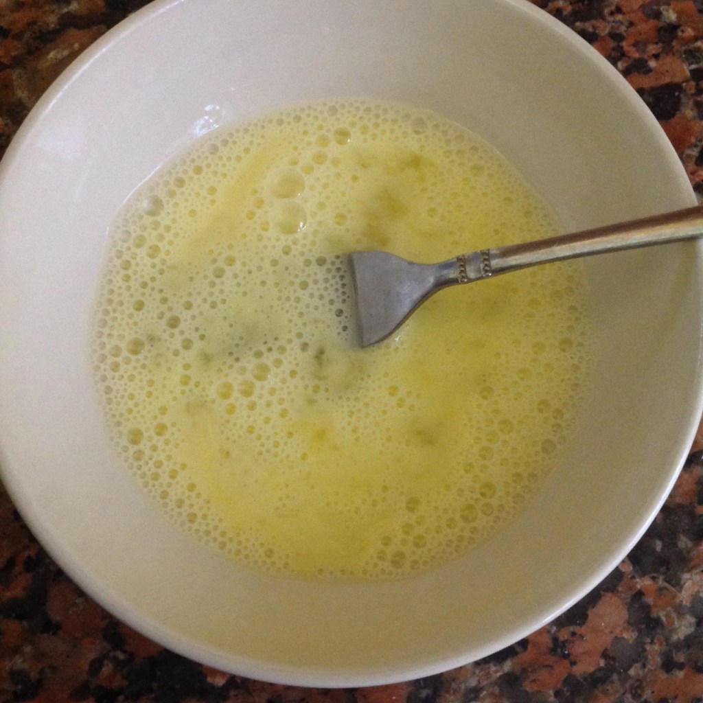 Step one: In a small bowl, beat together the egg with a splash of water.
