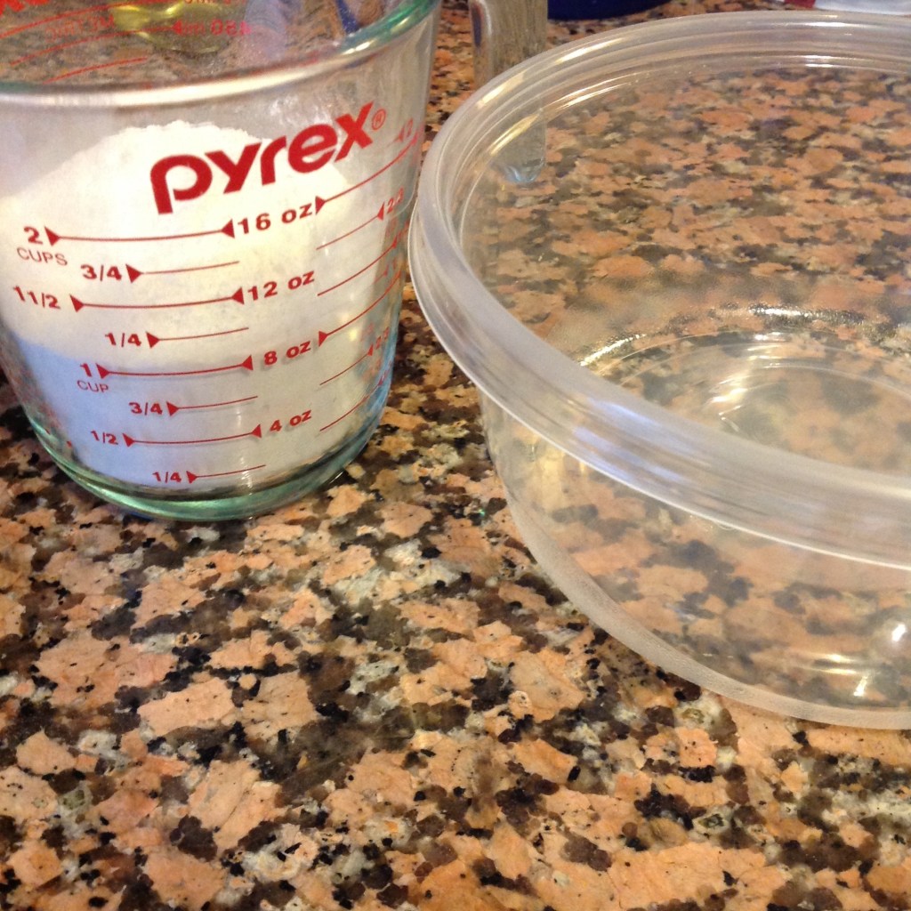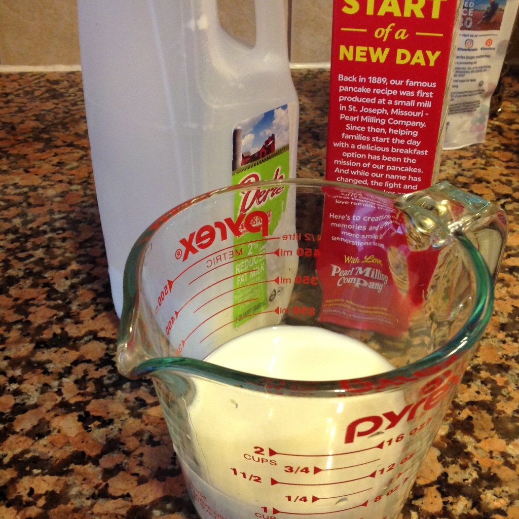 Step one: Measure out 1 cup of pancake mix and pour into a large bowl.