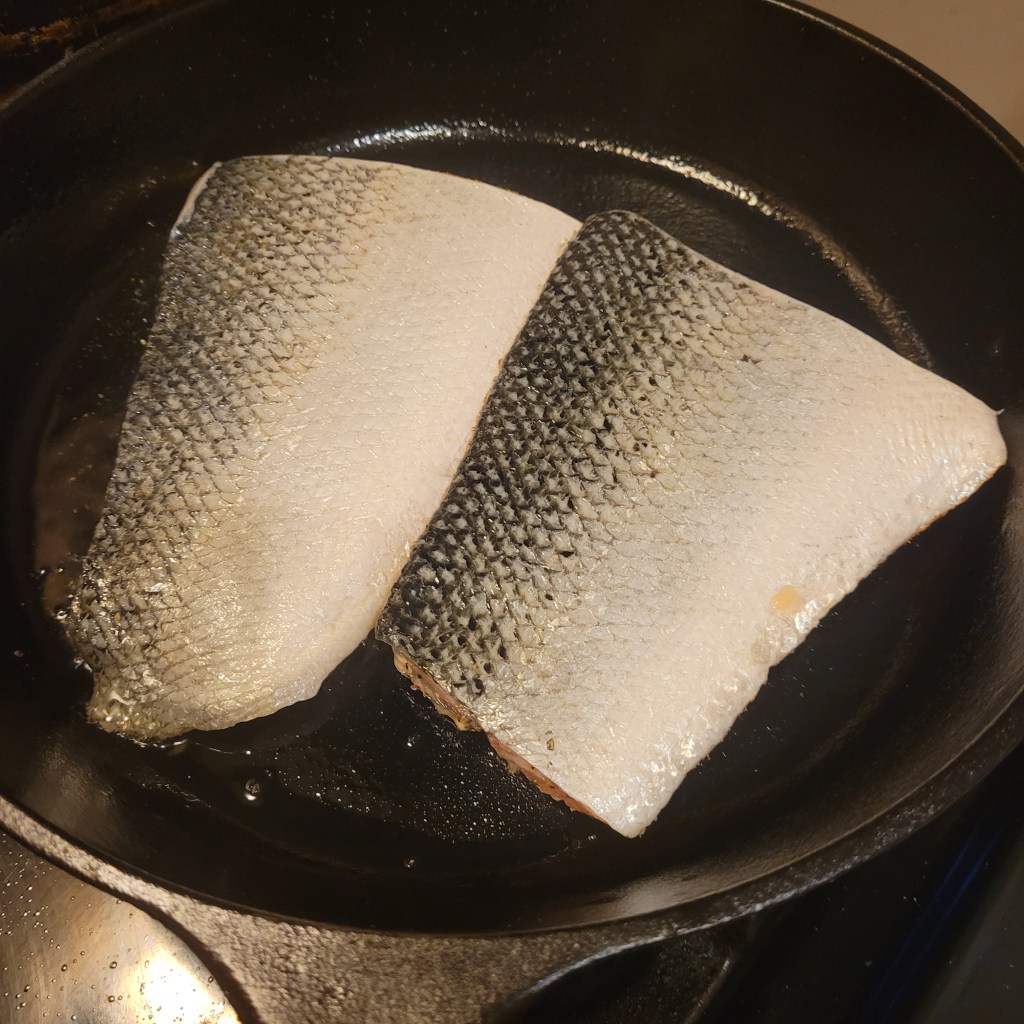Step two: Place the fish, flesh side down on the hot skillet. let it do it’s thanggg by cooking for 4 minutes each side. Then remove the cooked salmon and set aside on a plate.
