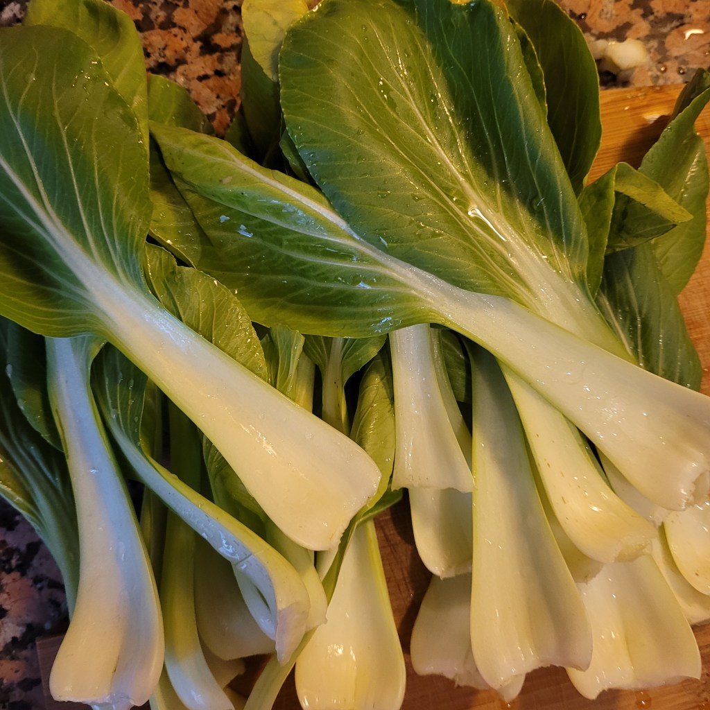 Step three: Separate the bok choy and chop off the stem. Give it a quick rinse in cold water and use your fingers to rid of the dirt.