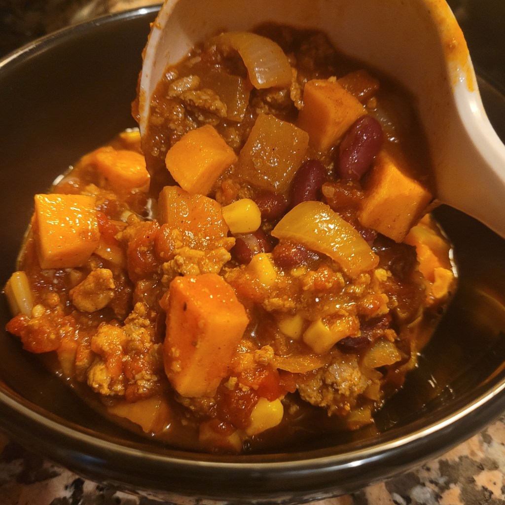 This delicious, healthy and hearty chili recipe is going to be a weeknight favorite that will leave you with plenty of leftovers! The sweet potato is the best part in my opinion and makes a HUGE difference.