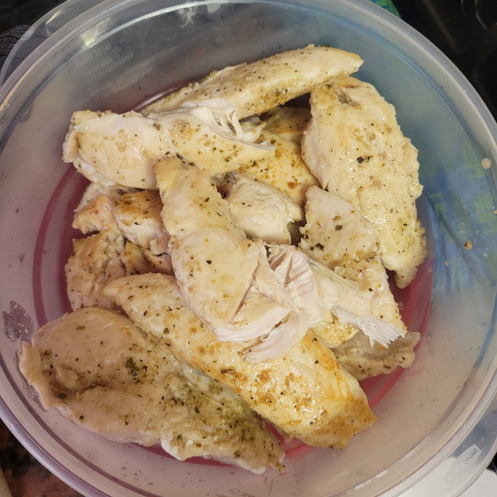 Step one: Wash, season and cook your chicken tenders. I cooked mine on each side for about 3-4 minutes and then removed them into a container.