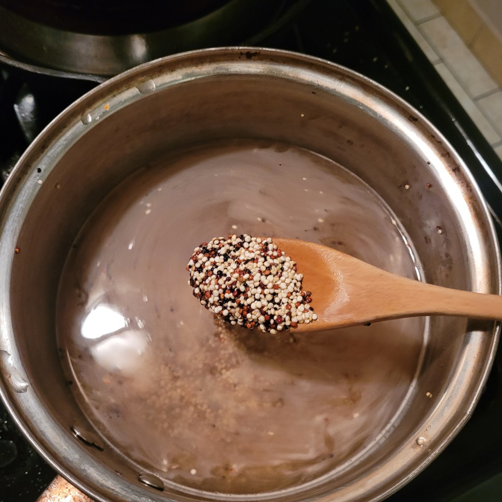 Step one: Begin with boiling the quinoa as per instructions. I used 1 cup of quinoa with a little salt. Add more water if need be.