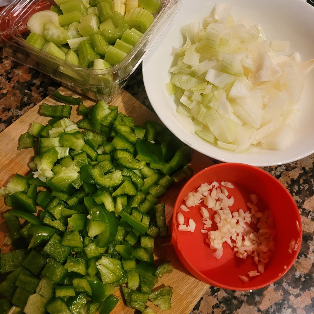 Step one: Prep the veggies. I bought the pre-cut celery to make my life easier because the local grocery store carries celery that’s far too much in quantity or the pre-cut selection that’s just the right amount.